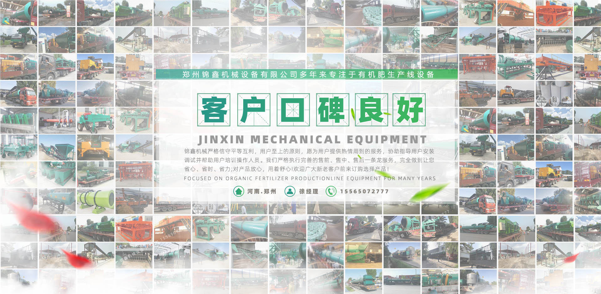 鄭州錦鑫機(jī)械設(shè)備有限公司,位于機(jī)械之鄉(xiāng)的河南省滎陽市,它交通便利,連霍高速公路、鄭州西南繞城高速、隴海鐵路、鄭西客運(yùn)專線貫穿全境,南水北調(diào)、西氣東輸在這里交匯。   公司有技術(shù)團(tuán)隊(duì)為企業(yè)生產(chǎn)肥料加工設(shè)備,有的合作伙伴,科學(xué)、規(guī)范的客戶培訓(xùn)體系;還有積極健康的企業(yè)文化,不斷創(chuàng)新的管理體制和經(jīng)營(yíng)模式和日益完備的經(jīng)銷網(wǎng)絡(luò)。它交通便利,310國(guó)道、連霍高速公路、鄭州西南繞城高速、隴海鐵路、鄭西客運(yùn)專線貫穿全境,南水北調(diào)、西氣東輸在這里交匯。   鄭州錦鑫機(jī)械設(shè)備有限公司是生產(chǎn)有機(jī)肥設(shè)備機(jī)械的企業(yè),產(chǎn)品:有機(jī)肥設(shè)備,有機(jī)肥造粒機(jī),復(fù)合肥設(shè)備,復(fù)合肥造粒機(jī),新型有機(jī)肥攪齒造粒機(jī),對(duì)輥擠壓造粒機(jī),有機(jī)肥生產(chǎn)線,有機(jī)肥加工設(shè)備,復(fù)合肥生產(chǎn)設(shè)備,有機(jī)肥造粒設(shè)備,雞糞烘干機(jī),轉(zhuǎn)鼓造粒機(jī),bb肥設(shè)備等遠(yuǎn)銷各地,品質(zhì)深受肯定! ...